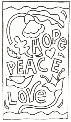 Hope, Peace, Love (Medium) by Bea Brock-Pattern Only or Complete Rug Hooking Kit