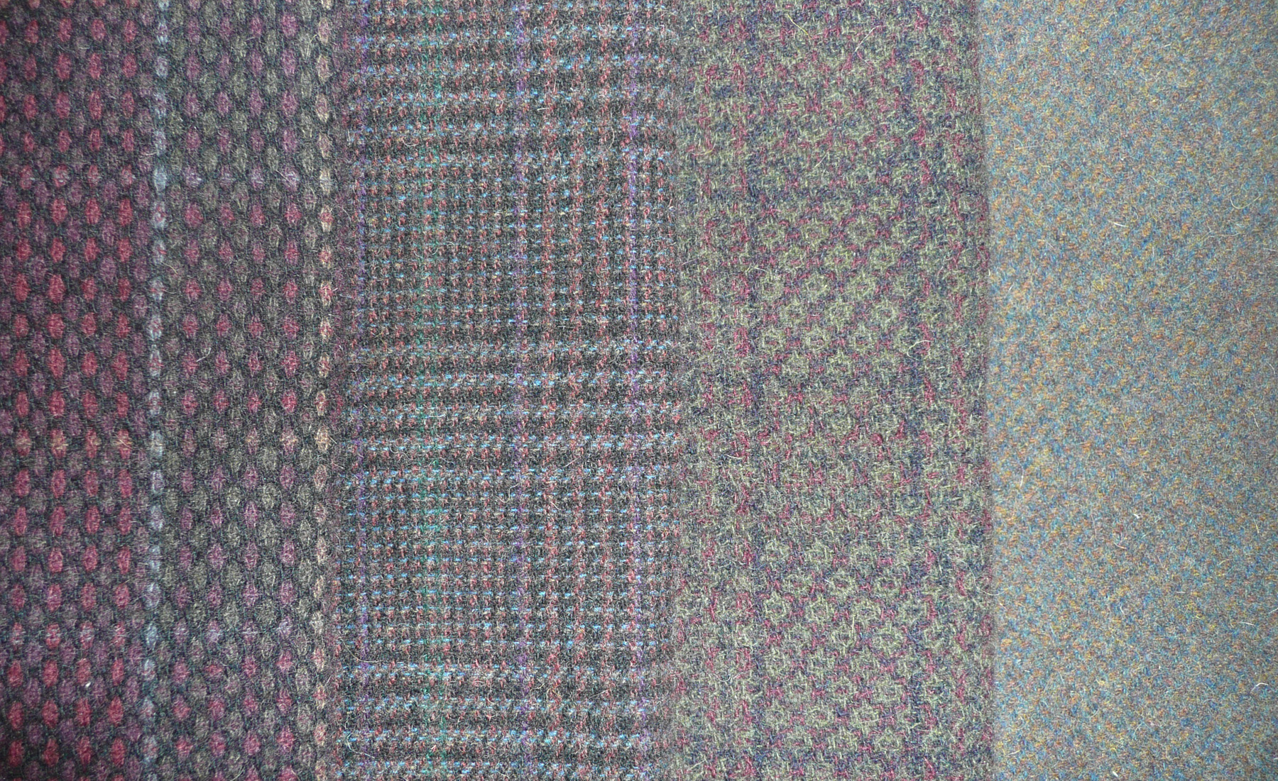 May is the month for a rich collection of dark backgounds. These woolens can be mixed together for a blended background, or each has enough varied texture to stand on its own. Remember to click the photo for a close-up view, they are lovely!