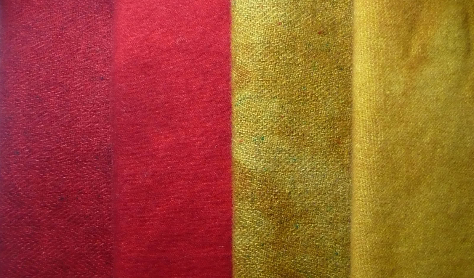 One yard of Beautiful hand-dyed wool in Fall and Holiday colors to use in a rug with fall leaves or Christmas Spirit!