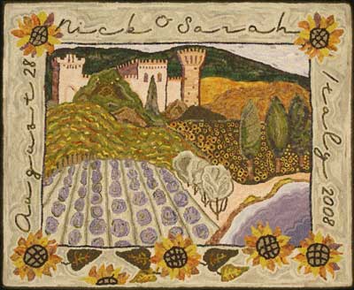 I hooked this rug for my daughter Sarah's wedding. It took place last summer in Italy at this beautiful medieval castle.
